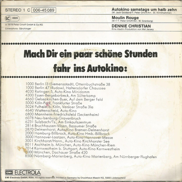 Vinyl / Dennie Christian - Autokino Samstags Um Halb Zehn