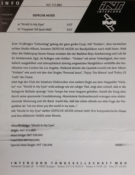 Vinyl / DepecheMode* - World In My Eyes / Happiest Girl / Sea Of Sin