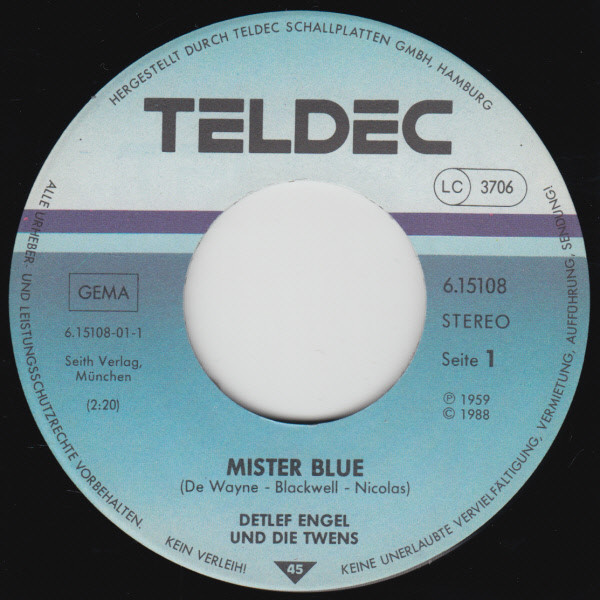 Vinyl / Detlef Engel Und Die Twens - Mister Blue / Junges Glück