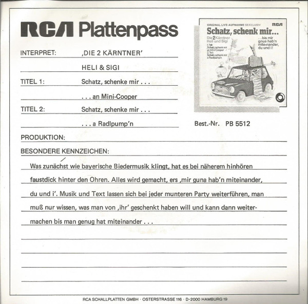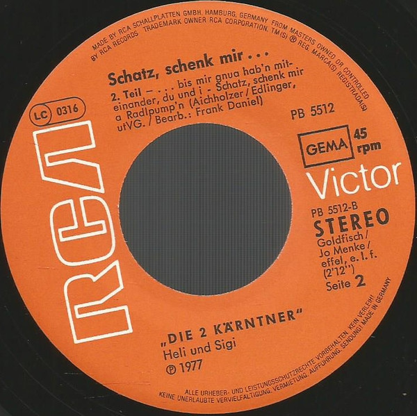 Vinyl / Die 2 Kärntner Heli & Sigi - Schatz, Schenk Mir...