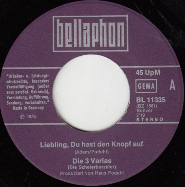 Vinyl / Die 3 Varias (Die Scheierborzeler)* - Liebling, Du Hast Den Knopf Auf