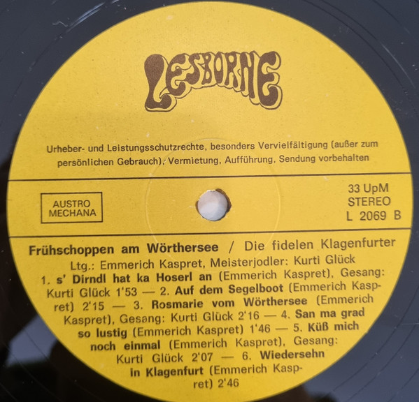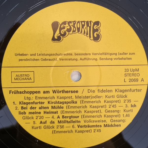 Vinyl / Die Fidelen Klagenfurter, Meisterjodler Kurti Glück* - Frühshoppen Am Wörthersee