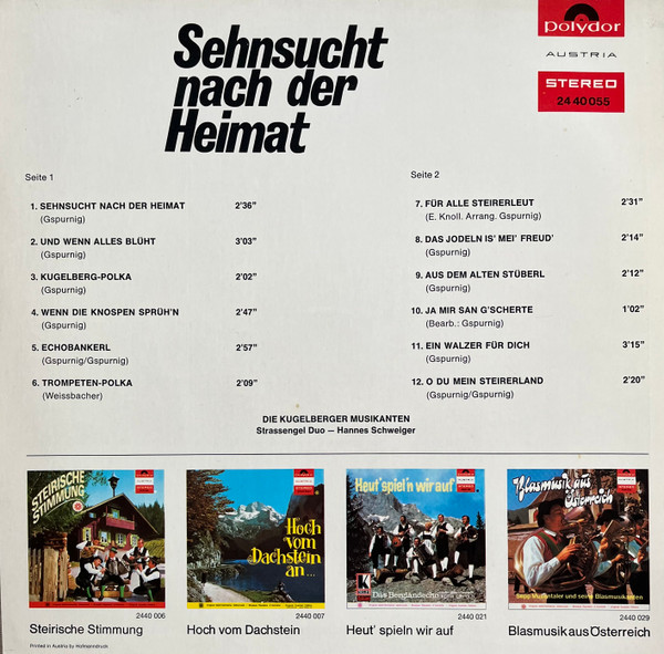Vinyl / Die Kugelberger Musikanten* - Sehnsucht Nach Der Heimat