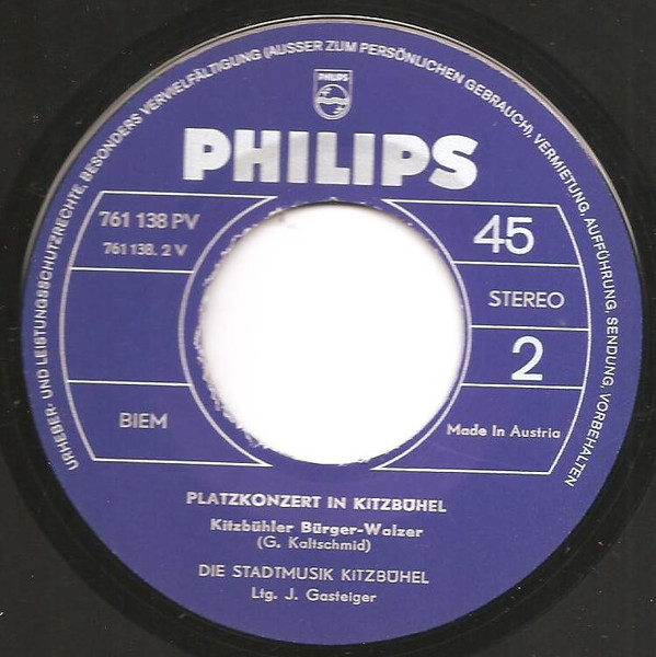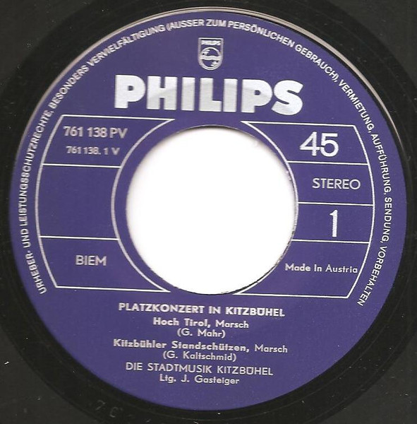 Vinyl / Die Stadtmusik Kitzbühel , Ltg. J. Gasteiger* - Platzkonzert In Kitzbühel