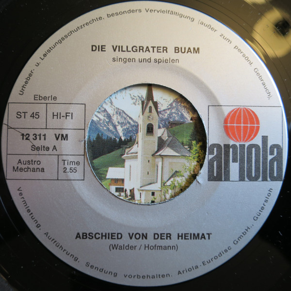 Vinyl / Die Villgrater Buam - Abschied Von Der Heimat (Villgrater-Lied)