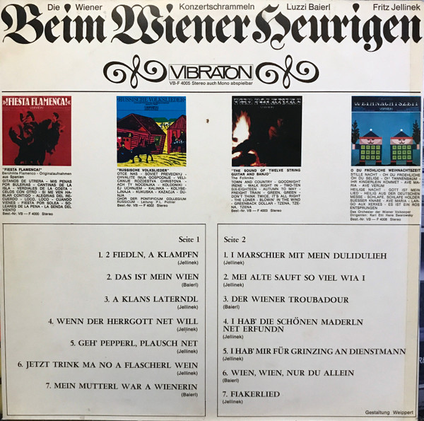 Vinyl / Die Wiener Konzertschrammeln*, Luzzi Baierl, Fritz Jellinek - Beim Wiener Heurigen