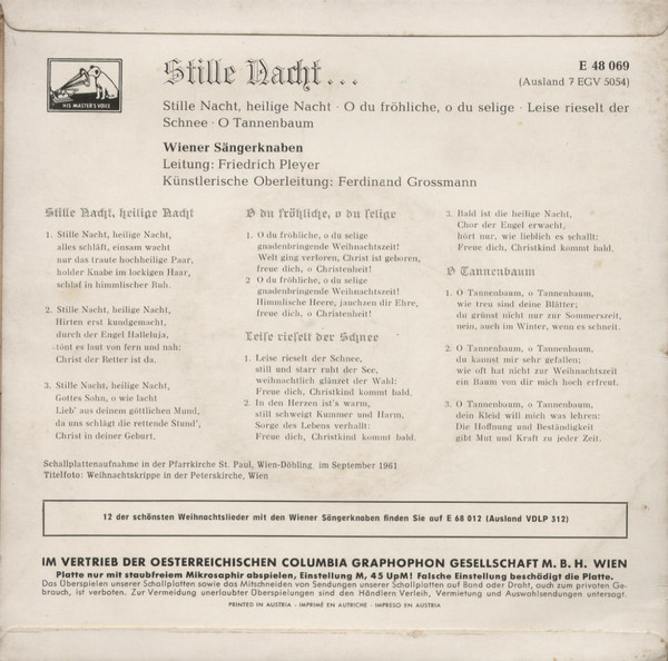 Vinyl / Die Wiener Sängerknaben, Friedrich Pleyer, Ferdinand Grossmann - Stille Nacht...