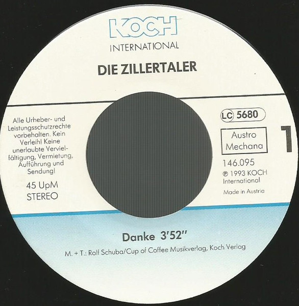 Vinyl / Die Zillertaler / Zillertaler Jodlertrio - Danke