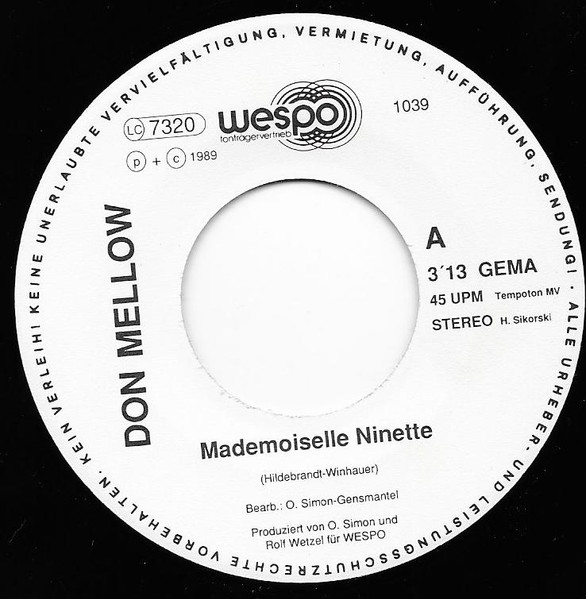 Vinyl / Don Mellow - Mademoiselle NInette