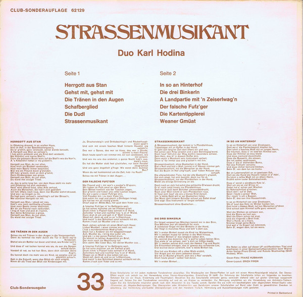Vinyl / Duo Karl Hodina - Strassenmusikant