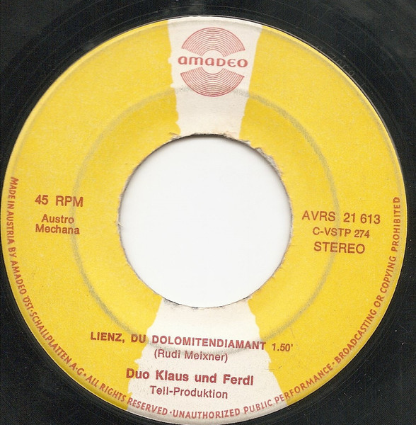 Vinyl / Duo Klaus Und Ferdl* - Rehbraune Augen Hat Mein Schatz / Lienz, Du Dolomitendiamant
