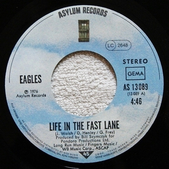 Vinyl / Eagles - Life In The Fast Lane / Wasted Time