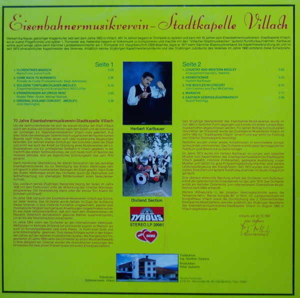 Vinyl / Eisenbahnermusikverein - Stadtkapelle Villach - Blasmusik International