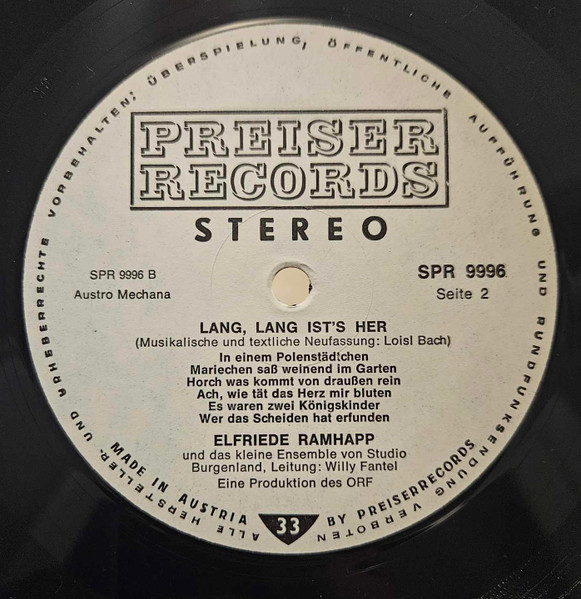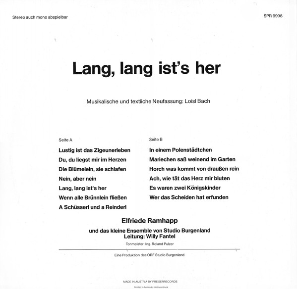 Vinyl / Elfriede Ramhapp - Lang, Lang Ist's Her