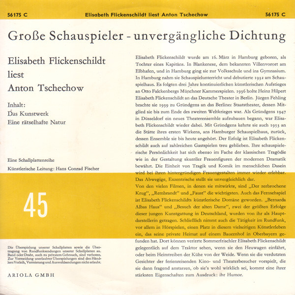 Vinyl / Elisabeth Flickenschildt Liest Anton Tschechow* - Das Kunstwerk / Eine Rätselhafte Natur