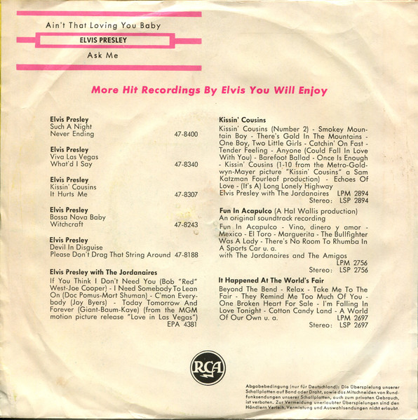Vinyl / Elvis* - Ain't That Loving You Baby