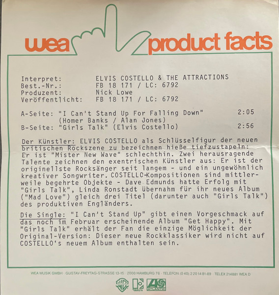 Vinyl / Elvis Costello And The Attractions* - I Can't Stand Up For Falling Down