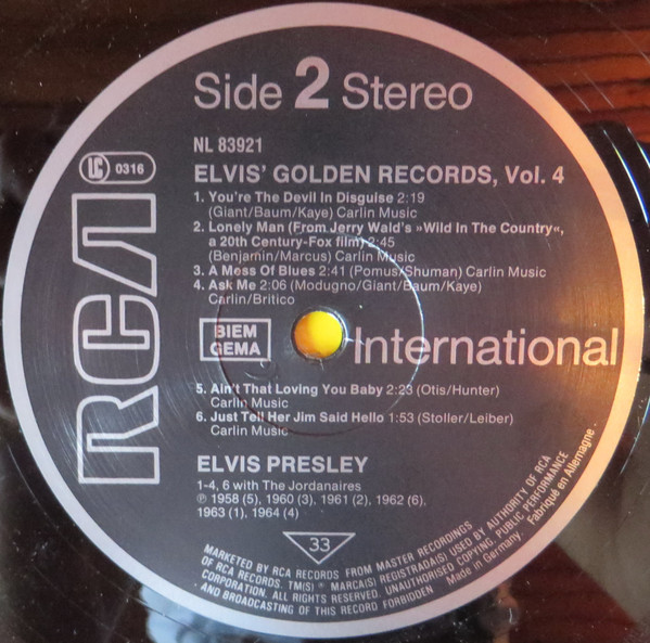 Vinyl / Elvis* - Elvis' Gold Records - Volume 4