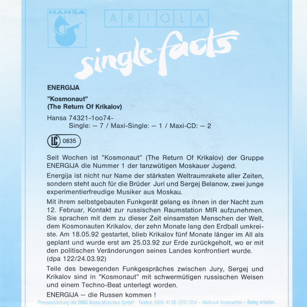 Vinyl / Energija - Kosmonaut (The Return Of Krikalov)
