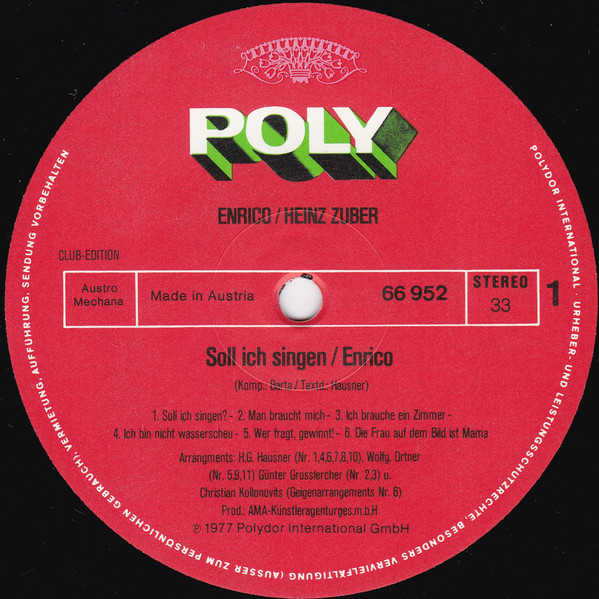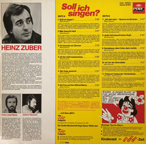 Vinyl / Enrico (58), Heinz Zuber - Soll Ich Singen? (Heinz Zuber Singt Lieder Für Kinder)