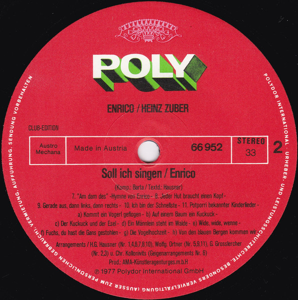 Vinyl / Enrico (58), Heinz Zuber - Soll Ich Singen? (Heinz Zuber Singt Lieder Für Kinder)