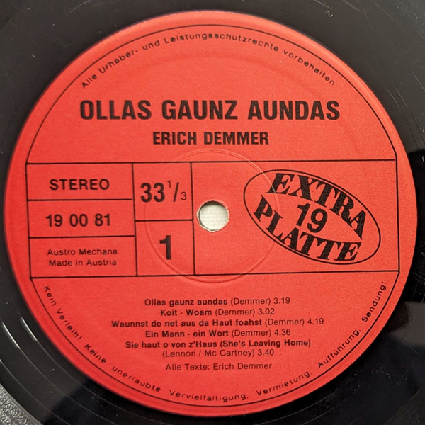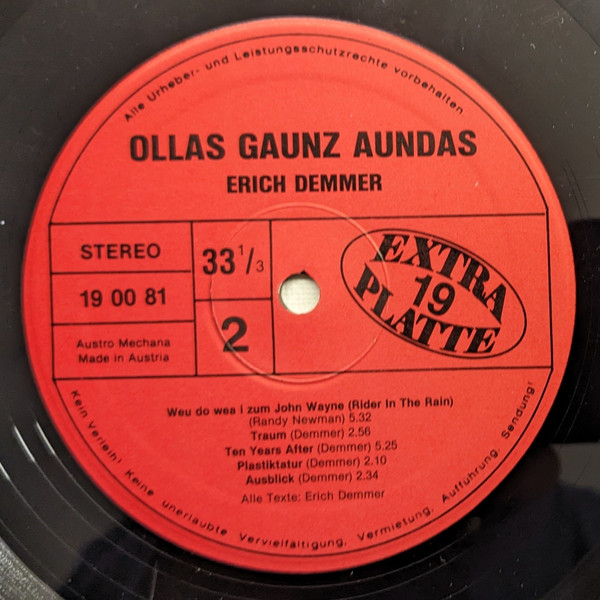 Vinyl / Erich Demmer - Ollas Gaunz Aundas