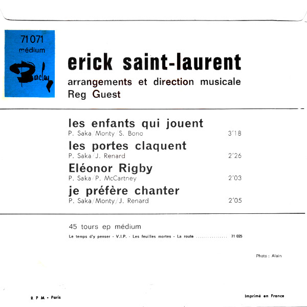 Vinyl / Erick Saint Laurent* - Les Enfants Qui Jouent