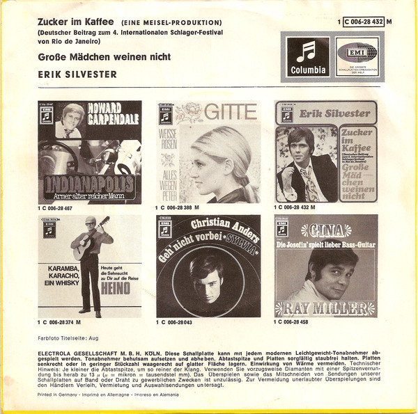 Vinyl / Erik Silvester - Zucker Im Kaffee / Große Mädchen Weinen Nicht