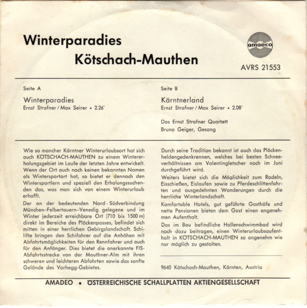 Vinyl / Ernst Strafner-Quartett* - Winterparadies / Kärntnerland