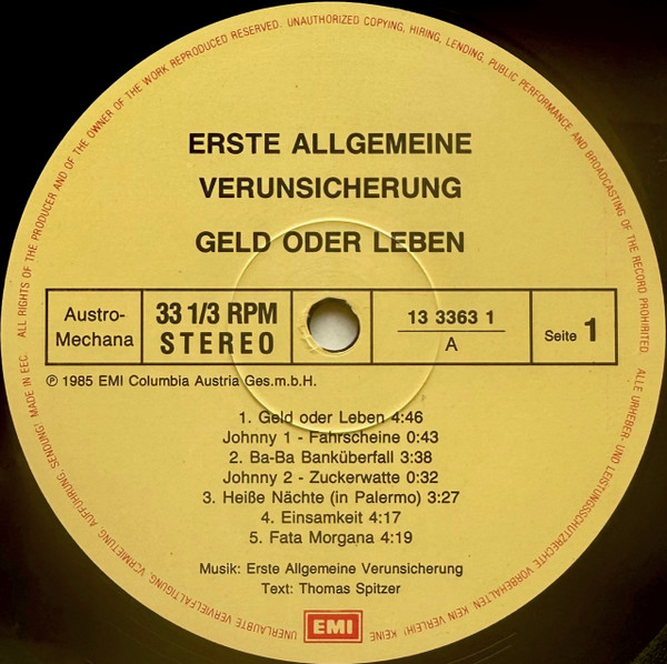 Vinyl / Erste Allgemeine Verunsicherung* - Geld Oder Leben!
