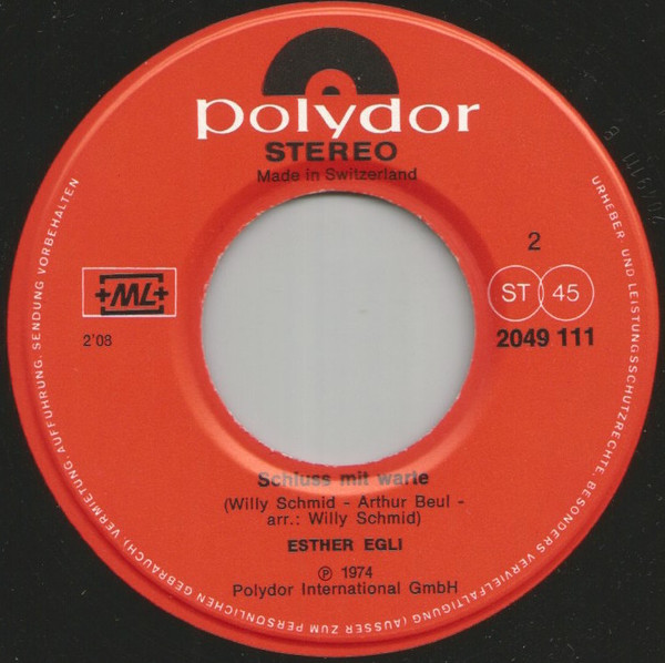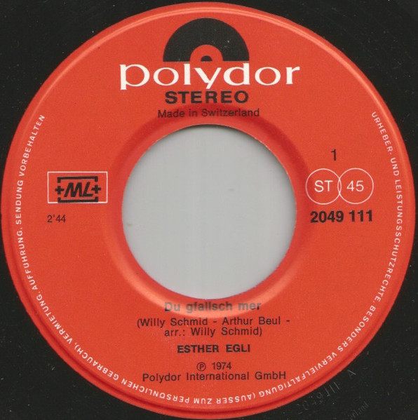 Vinyl / Esther Egli - Du Gfallsch Mer / Schluss Mit Warte