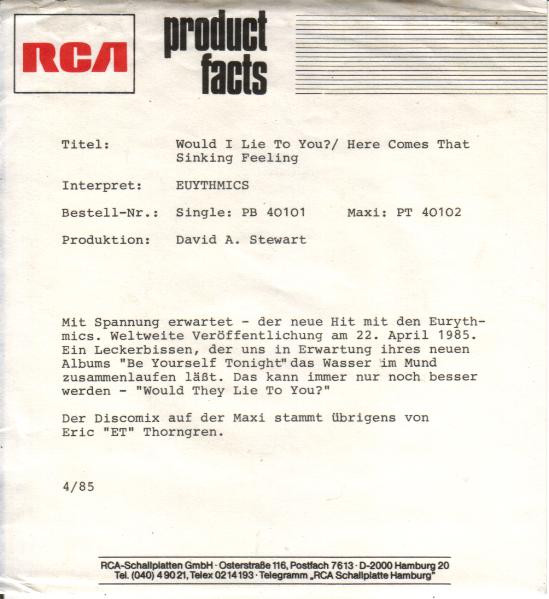 Vinyl / Eurythmics - Would I Lie To You?