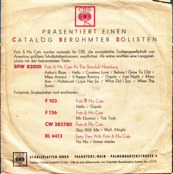 Vinyl / Fats And His Cats - Slop With Me / Well, Allright