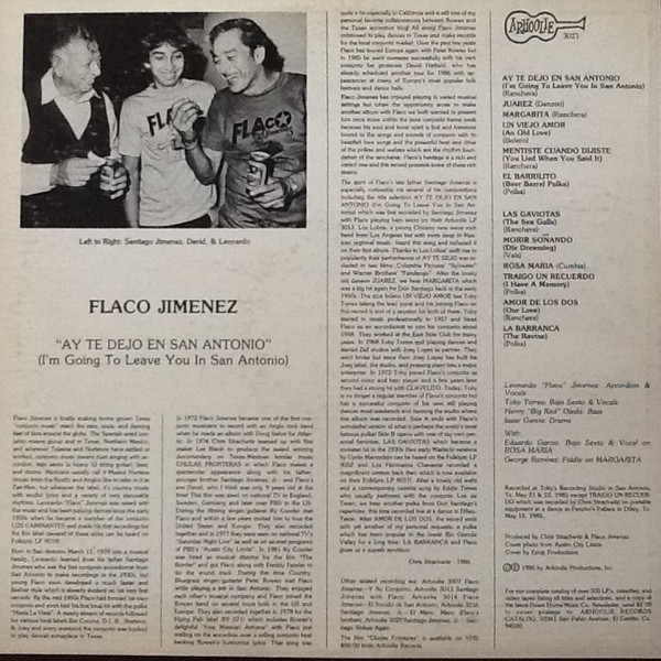Vinyl / Flaco Jimenez - Ay Te Dejo En San Antonio