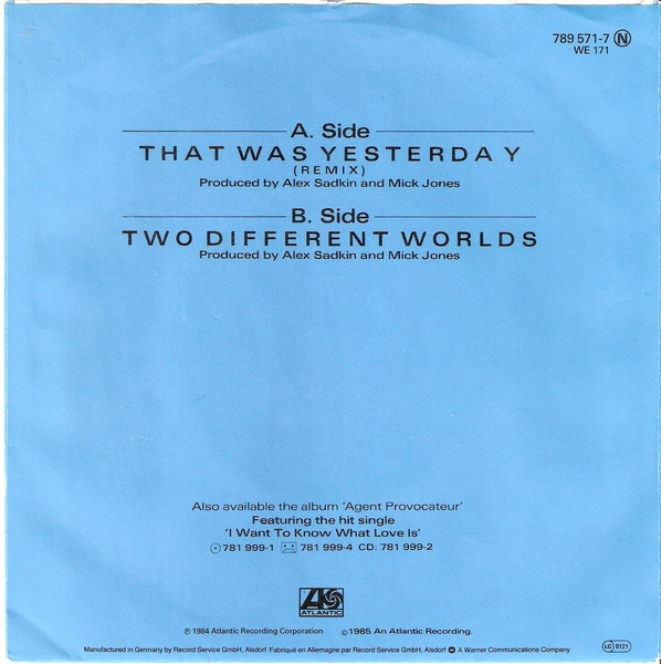 Vinyl / Foreigner - That Was Yesterday