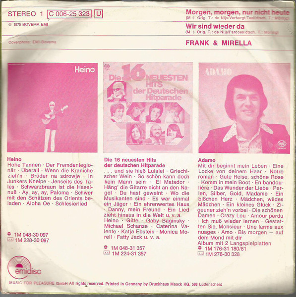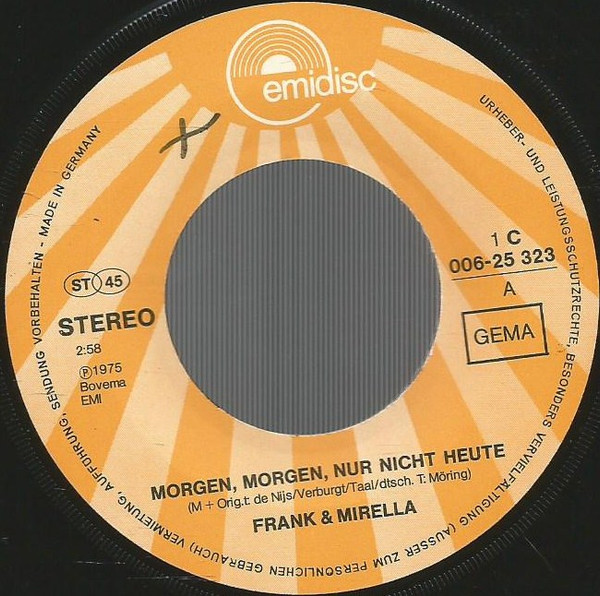 Vinyl / Frank & Mirella - Morgen, Morgen, Nur Nicht Heute