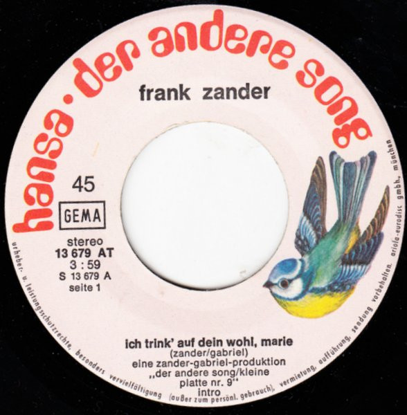 Vinyl / Frank Zander - Ich Trink' Auf Dein Wohl, Marie / Der Ur-Ur-Enkel Von Frankenstein