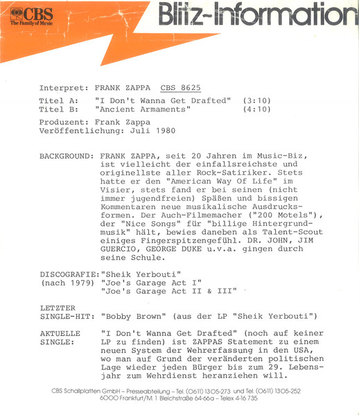 Vinyl / Frank Zappa - I Don't Wanna Get Drafted!
