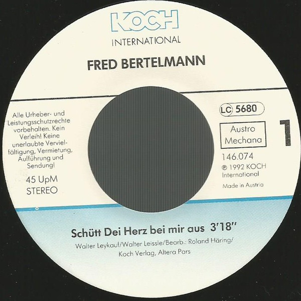 Vinyl / Fred Bertelmann - Schütt Dein Herz Bei Mir Aus