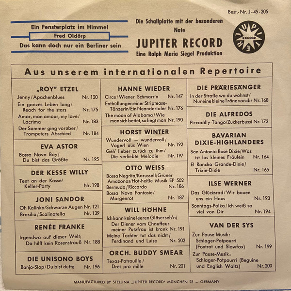 Label: Jupiter Record - Cat#: J-45 Nr. 205