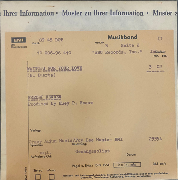 Format: Vinyl, 7", 45 RPM, Test Pressing