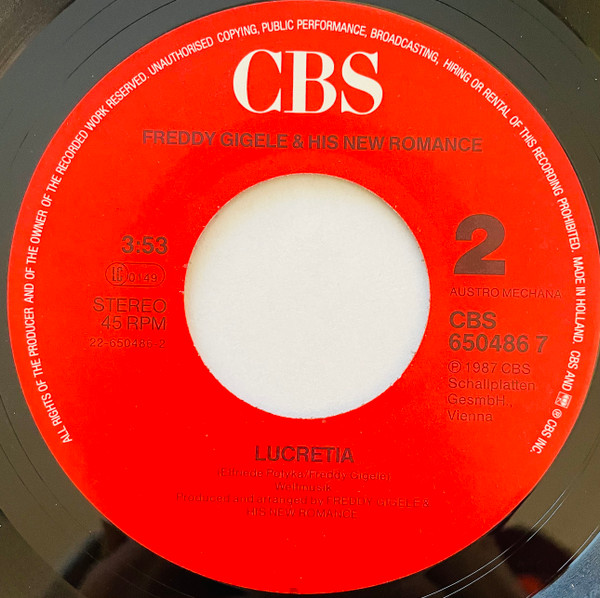 Vinyl / Freddy Gigele & His New Romance - Hold On To My Love / Lucretia