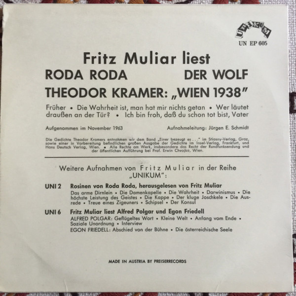 Vinyl / Fritz Muliar Liest Roda Roda - Der Wolf