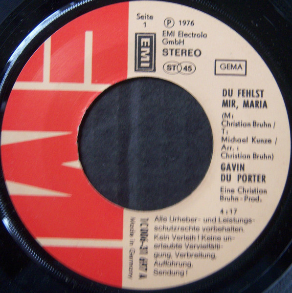 Vinyl / Gavin Du Porter - Du Fehlst Mir, Maria