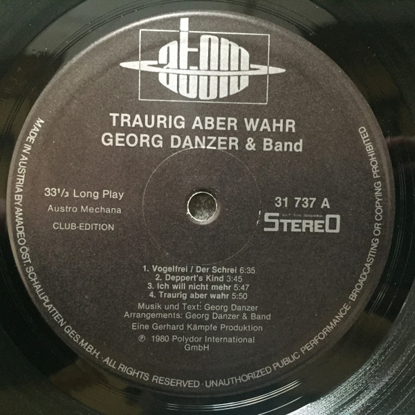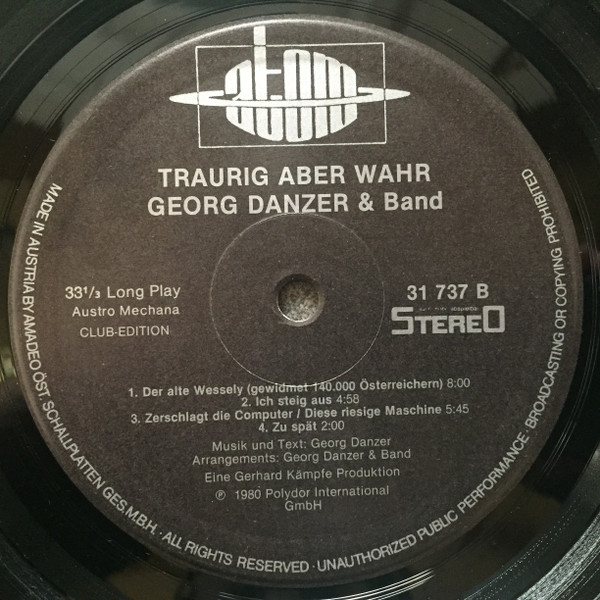 Vinyl / Georg Danzer & Band - Traurig Aber Wahr