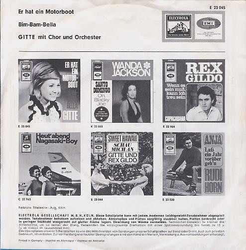 Vinyl / Gitte* - Er Hat Ein Motorboot / Bim-Bam-Bella