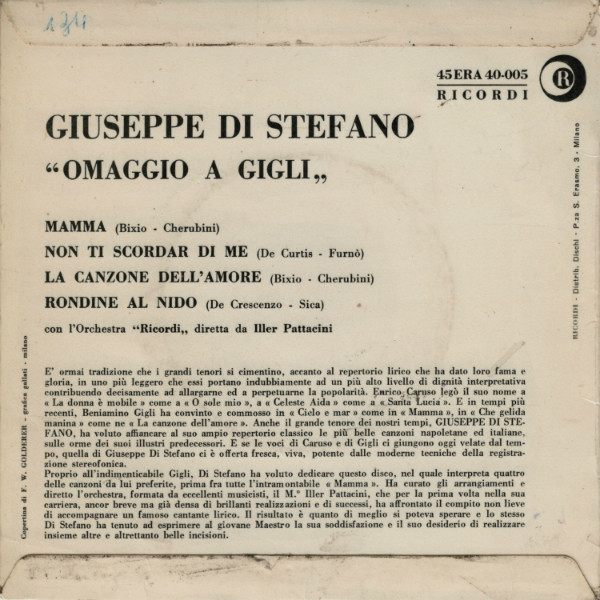 Label: Ricordi - Cat#: 45ERA 40-005