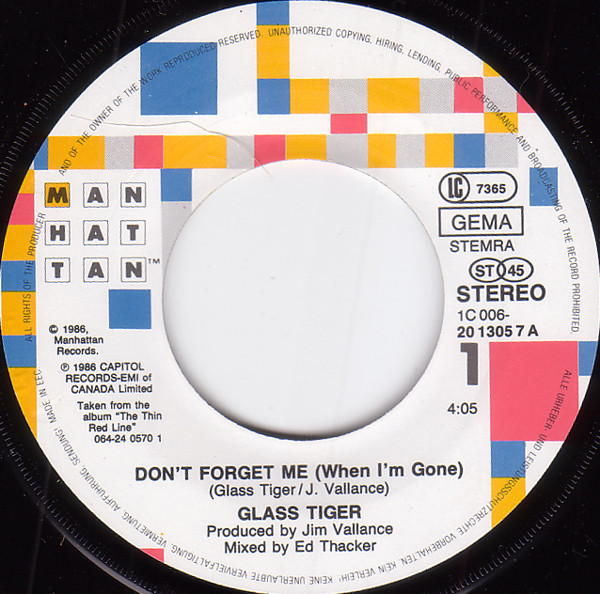 Vinyl / Glass Tiger - Don't Forget Me (When I'm Gone)