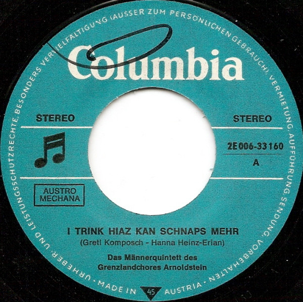 Vinyl / Grenzlandchor Arnoldstein - I Trink Hiaz Kan Schnaps Mehr / Das Bleamle Auf Da Wiesn