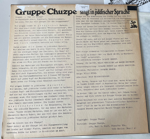 Label: Gruppe Chuzpe - Cat#: 71981
